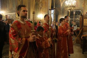 27 апреля, во вторую неделю по Пасхе — апостола Фомы, Божественную литургию на Патриаршем Подворье возглавил настоятель Подворья протоиерей Владимир Тыщук в сослужении протоиерея Алексия Максименюка и клириков храма святого великомученика Пантелеимона протоиерея Дмитрия Тухчиева и диакона Александра Морозова.
