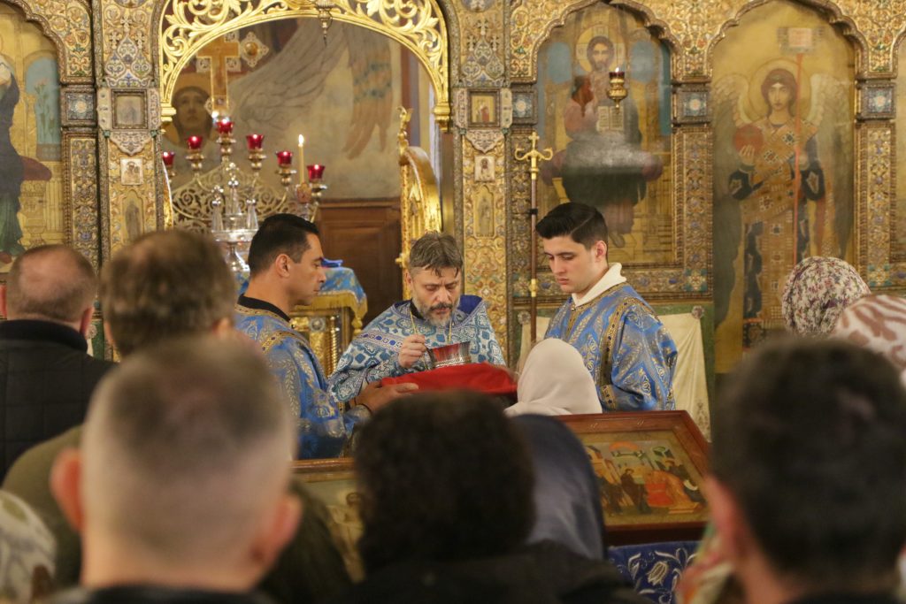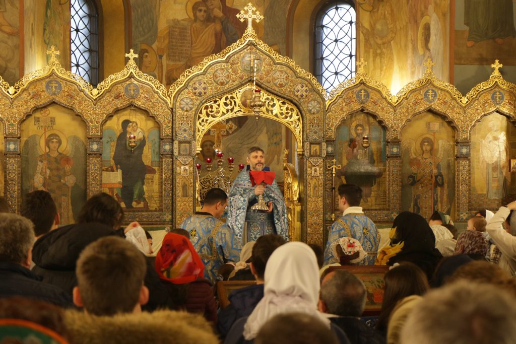 На сугубой ектении прозвучали прошения о единстве Православной Церкви и сохранении Церкви от разделений и расколов. После сугубой ектении была вознесена молитва о восстановлении мира.