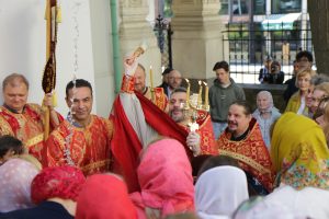 На сугубой ектении прозвучали прошения о единстве Православной Церкви и сохранении Церкви от разделений и расколов. После сугубой ектении была вознесена молитва о восстановлении мира.