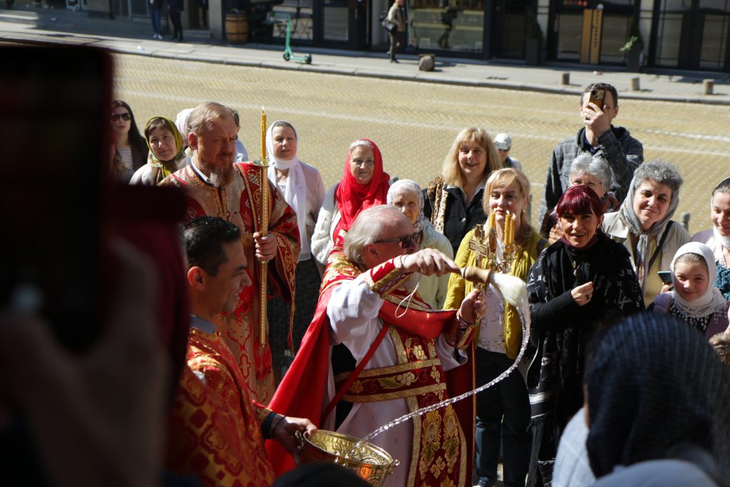 После литургии был совершен Пасхальный крестный ход вокруг храма.